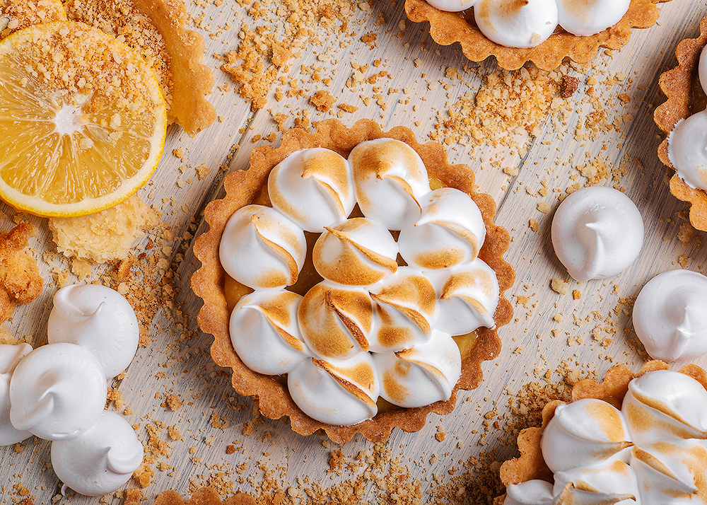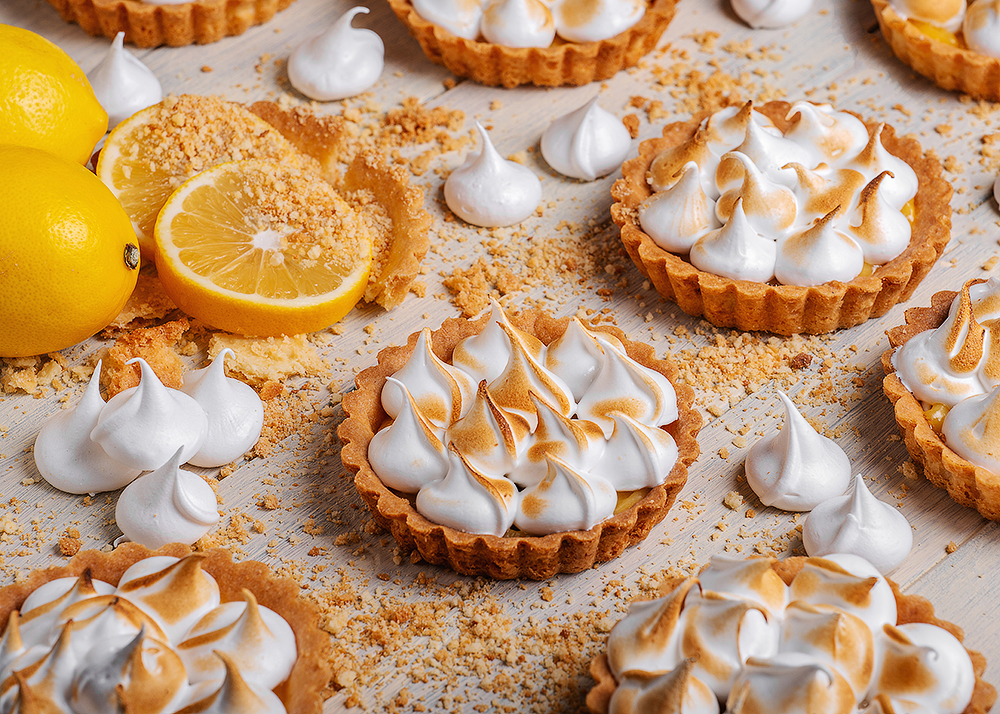 На основу з пісочного тіста, замішаного виключно на вершковому маслі вилито лимонний курд і оздоблено хмаринками з карамелізованої меренги.