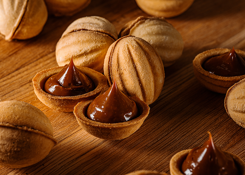 Хрумке маленьке тістечко родом з дитинства, яке вправно складе компанію горнятку кави і поліпшить настрій. Пісочна основа замішана на вершковому маслі, збалансована по вмісту цукру, аби виразно підкреслити природну солодкість згущенки, що розмістилась всередині.