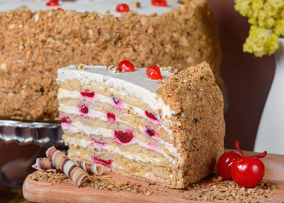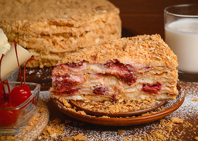 Ми приготували наш класичний торт Наполеон у міні - форматі і замінили один слой крему соленою карамеллю власного виробництва.