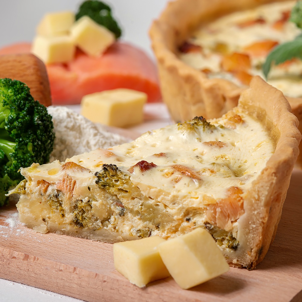 Кіш з лососем, броколі та фермерським сулугуні