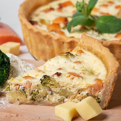 Кіш приготований на пісочному солоному тісті на вершковому маслі. Начинка смачна і соковита, складається з цвітної капусти, куриного філе ,цибулі, болгарського перцю. Заливка складається з молока, вершків та яєць. Подається як у підігрітому, так і у холодному вигляді.