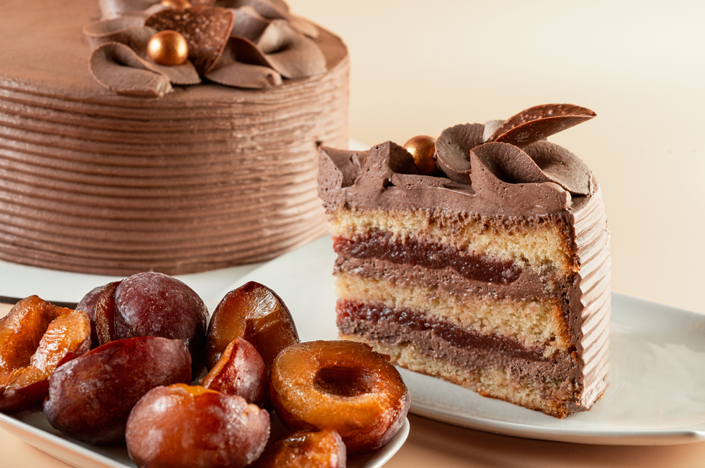 Торт складається з ванільного бісквіту, вершково - сирного крему з какао та сливового конфітюру з ромом.