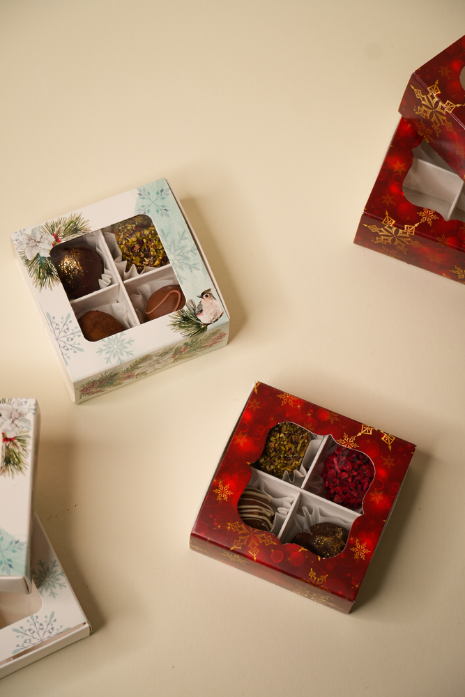 Для нашого Бананового трюфеля ми карамелізували пюре з банану, додали чорний і молочний бельгійський шоколад, масло "нуазет" та ром. Трюфель має хрумку оболонку з молочного шоколаду і м'яку та ароматну серединку.